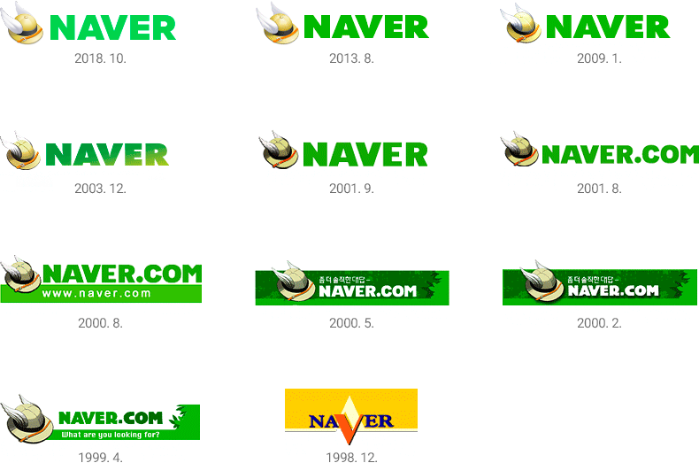 98년 네이버가 처음 등장했을 때를 제외하고, 네이버는 그들만의 컬러인 녹색을 지금까지 고집합니다. 네이버의 모든 웹페이지의 UI, 그리고 각종 인쇄물, TV CF 등에서도 동일한 컬러와 심볼, 로고를 사용했습니다. 트렌드를 살짝 반영해 가며 아주 미묘한 변화만 주었을 뿐이지요. 결국 이 같은 네이버의 노력은 브랜드 아이덴티티를 보는 시점에서 큰 성공을 거둡니다.